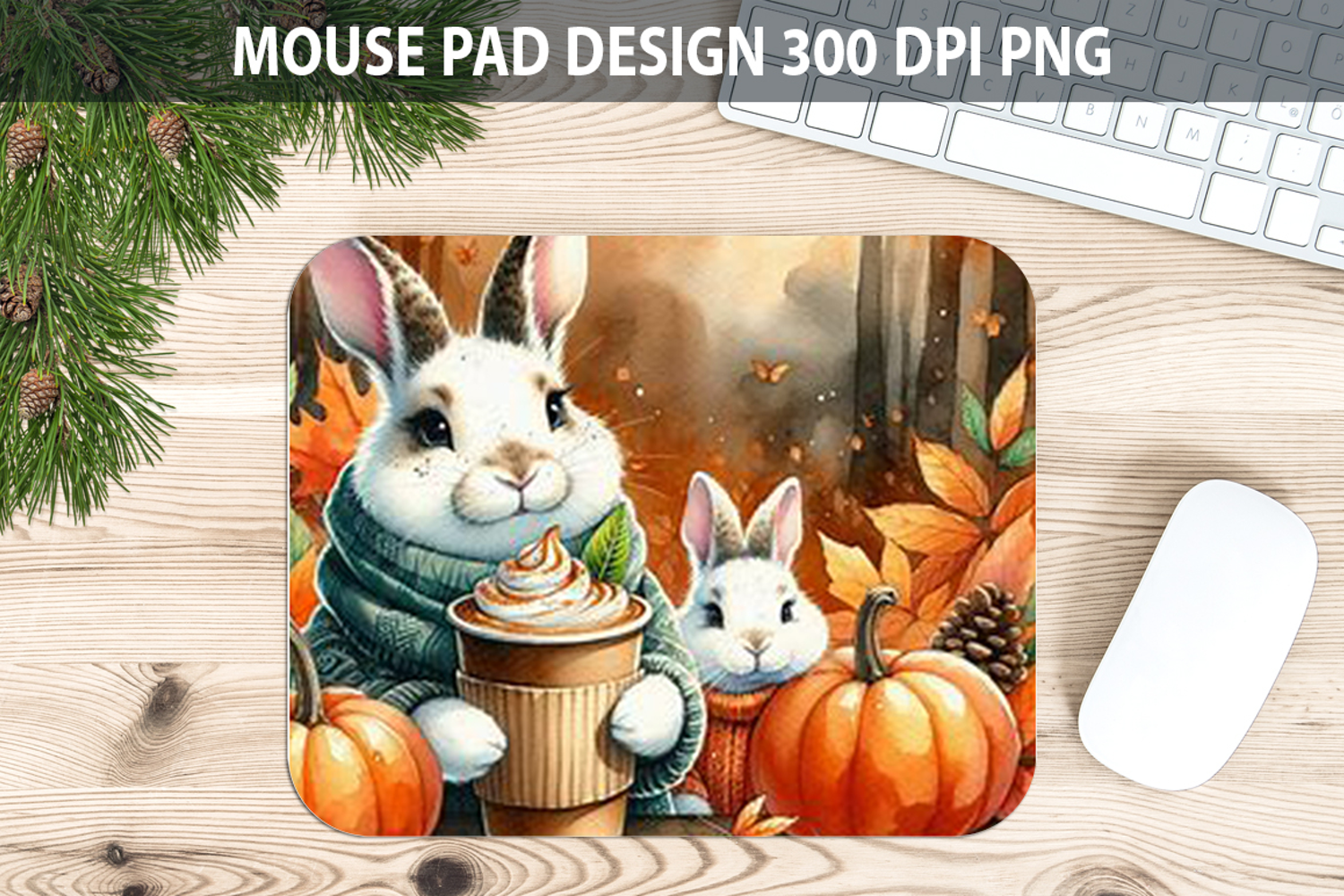Watercolor Bunny Mouse Pad Sublimation - Animal PNG Design