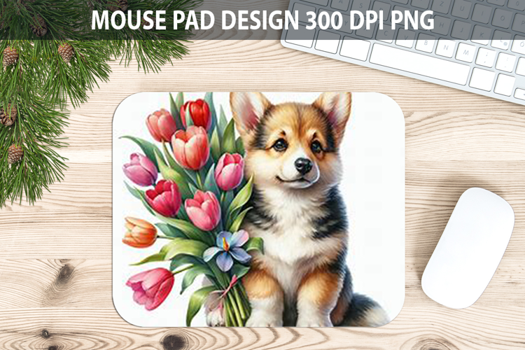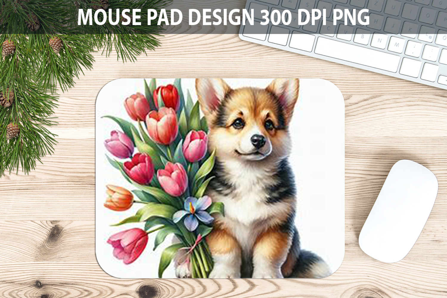 Watercolor Dog Mouse Pad Sublimation - Valentines PNG Design example image 1