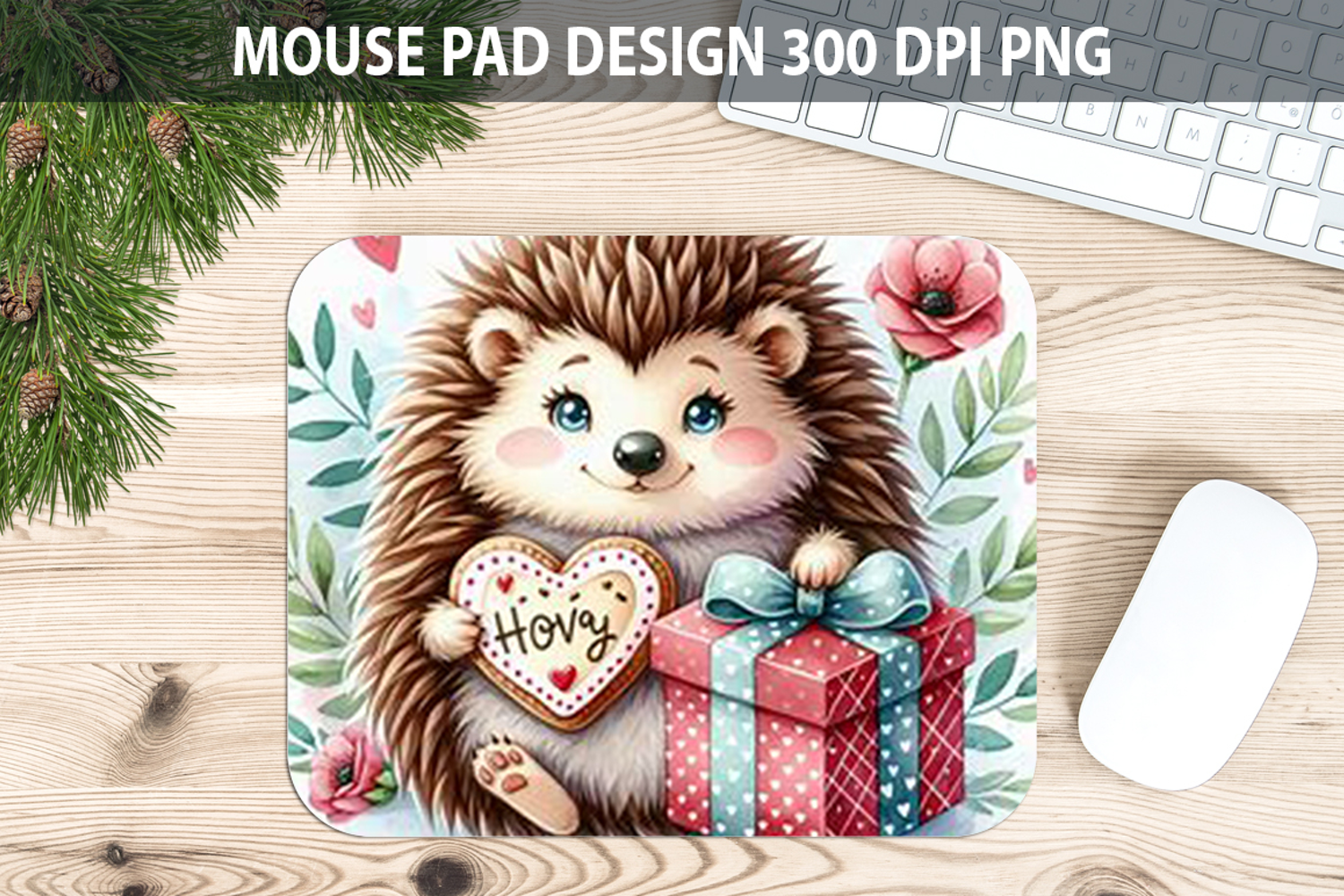 Similar Design Products to Watercolor Hedgehog Mouse Pad Sublimation - Valentines PNG