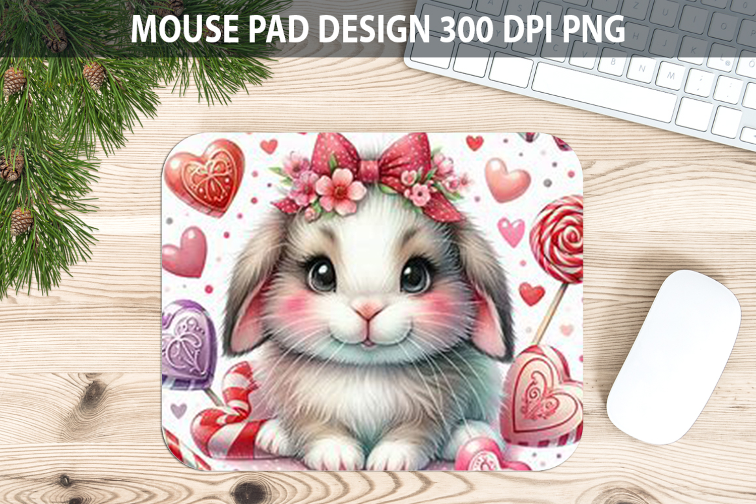 Watercolor Bunny Mouse Pad Sublimation - Valentines PNG