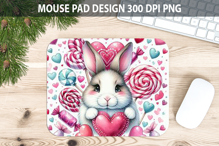 Watercolor Bunny Mouse Pad Sublimation - Valentines PNG example image 1