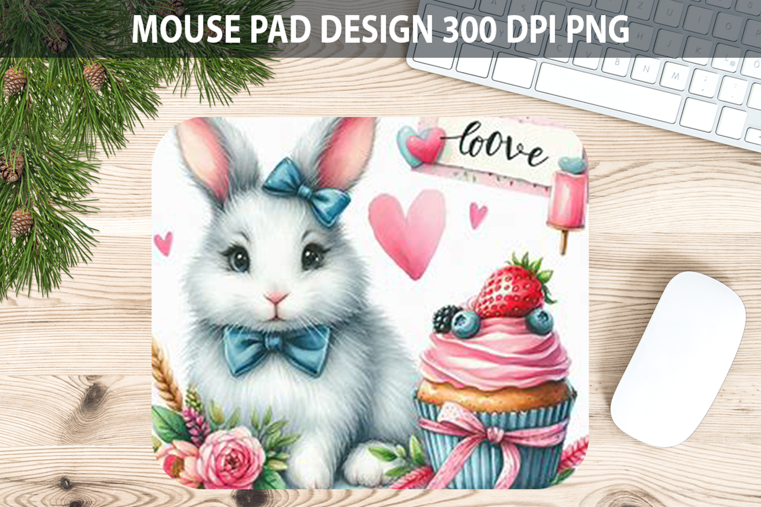 Watercolor Rabbit Mouse Pad Sublimation - Valentines PNG