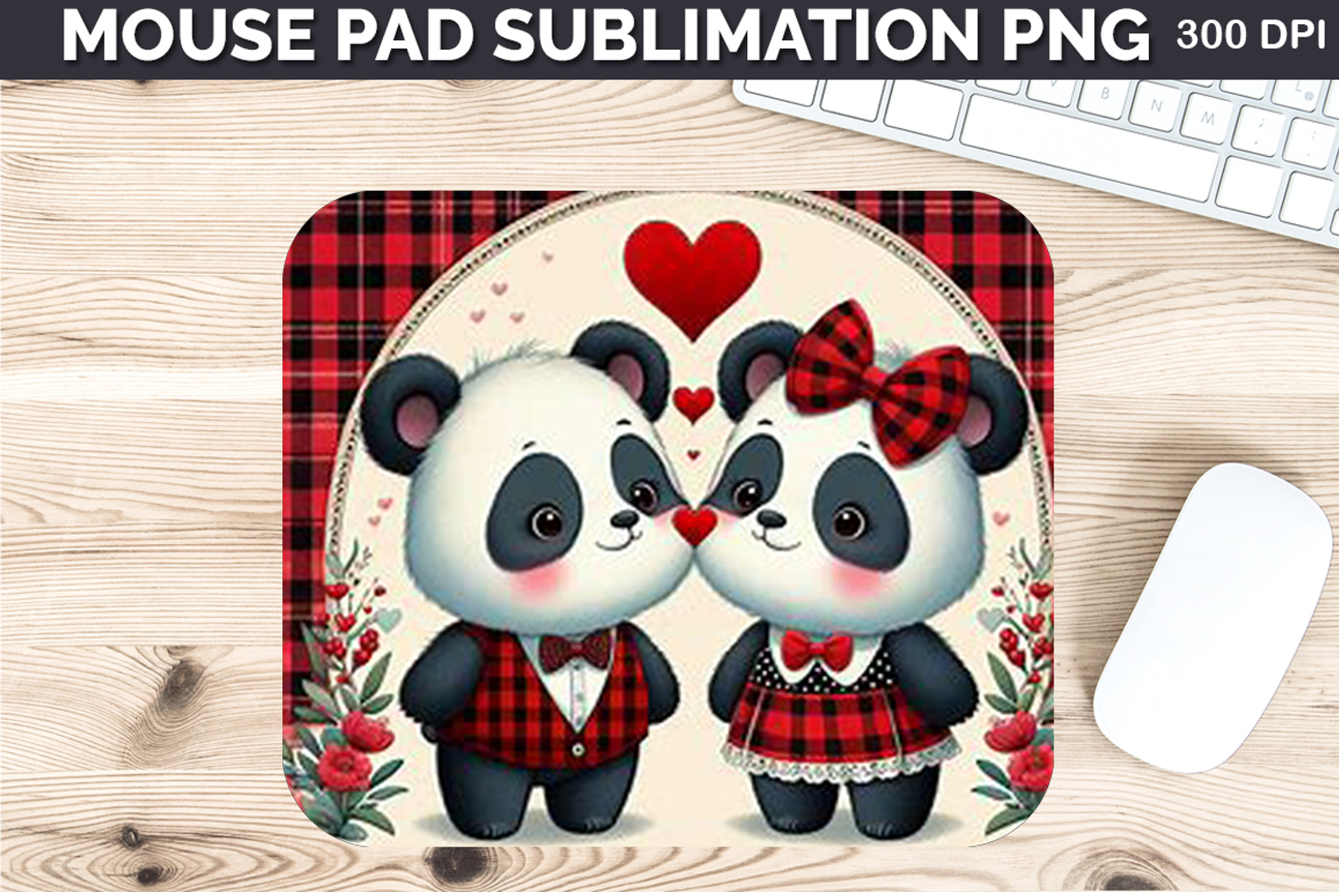 Watercolor Panda Mouse Pad Sublimation - Valentines PNG