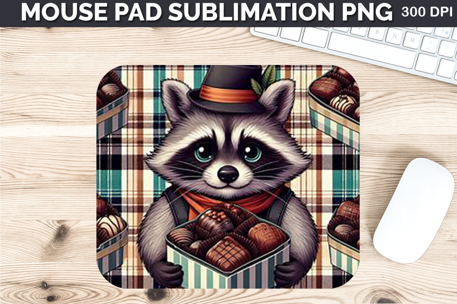 Similar Design Products to Watercolor Raccoon Mouse Pad Sublimation - Valentines PNG