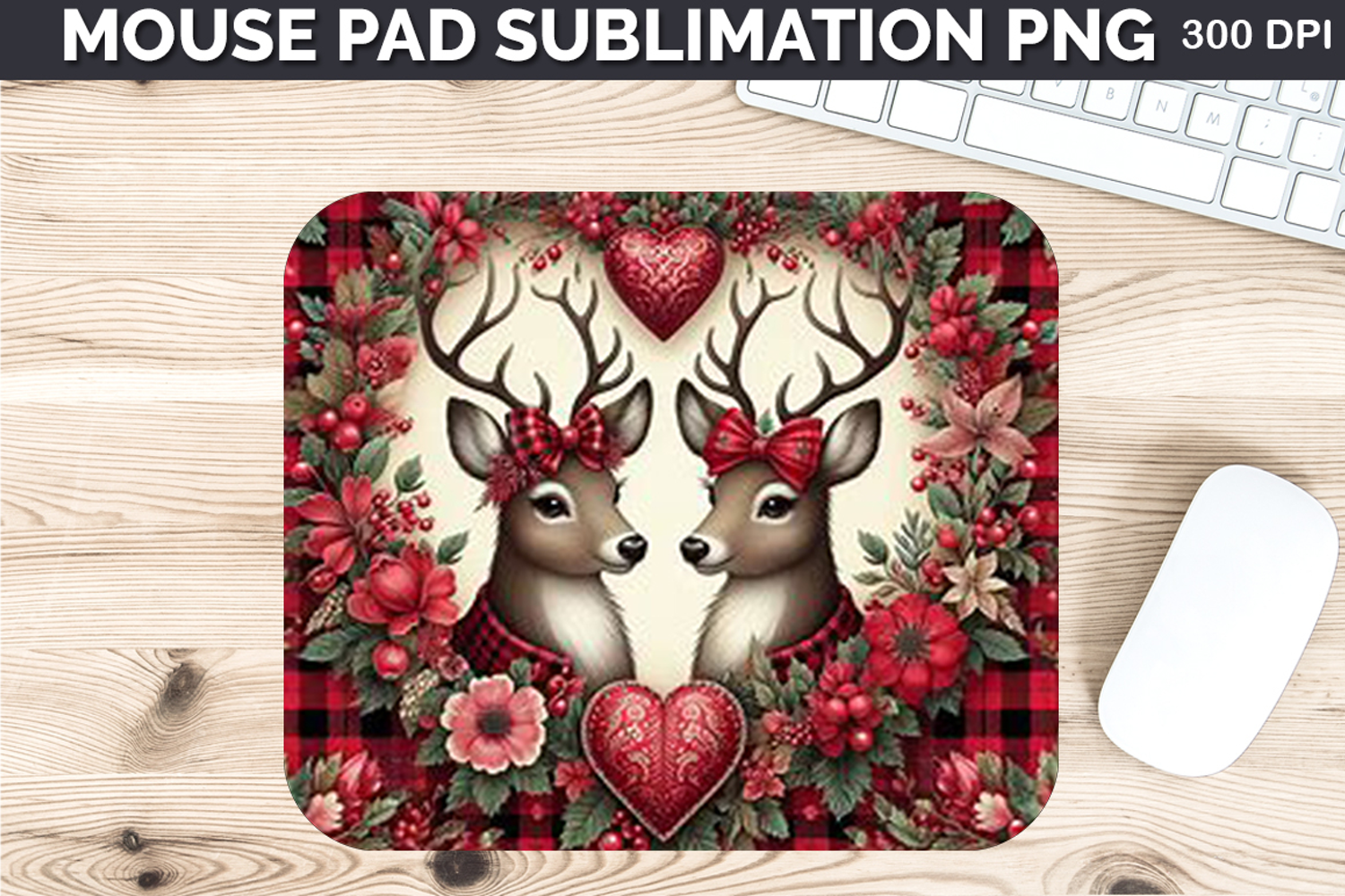 Watercolor Deer Mouse Pad Sublimation - Valentines PNG