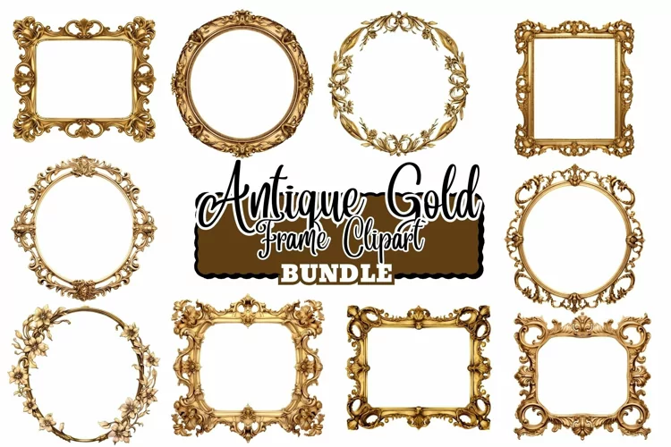 Similar Design Products to Antique Gold Frames Clipart Bundle