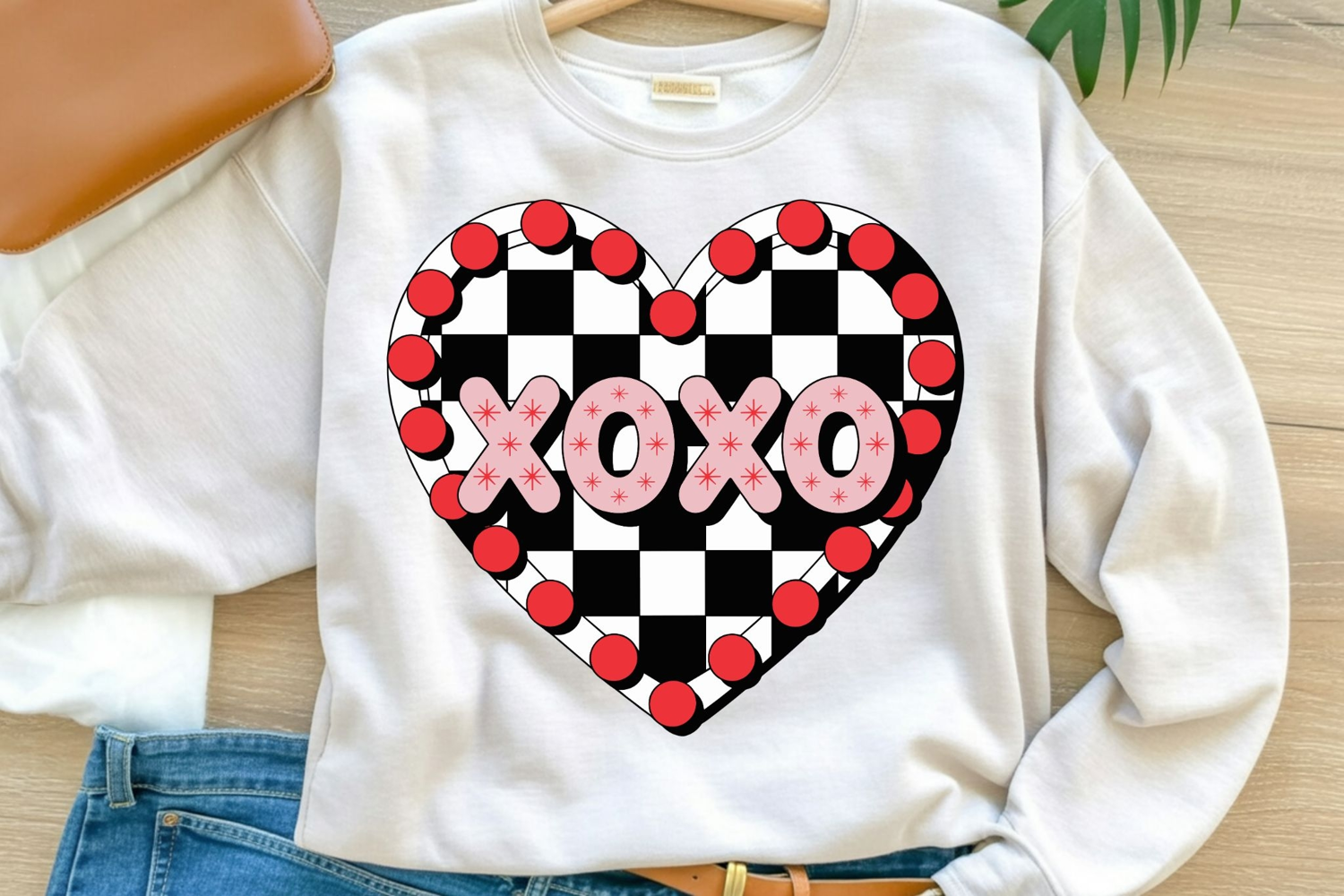XOXO Checkerboard Heart PNG | Valentine’s Day Retro Heart example image 1