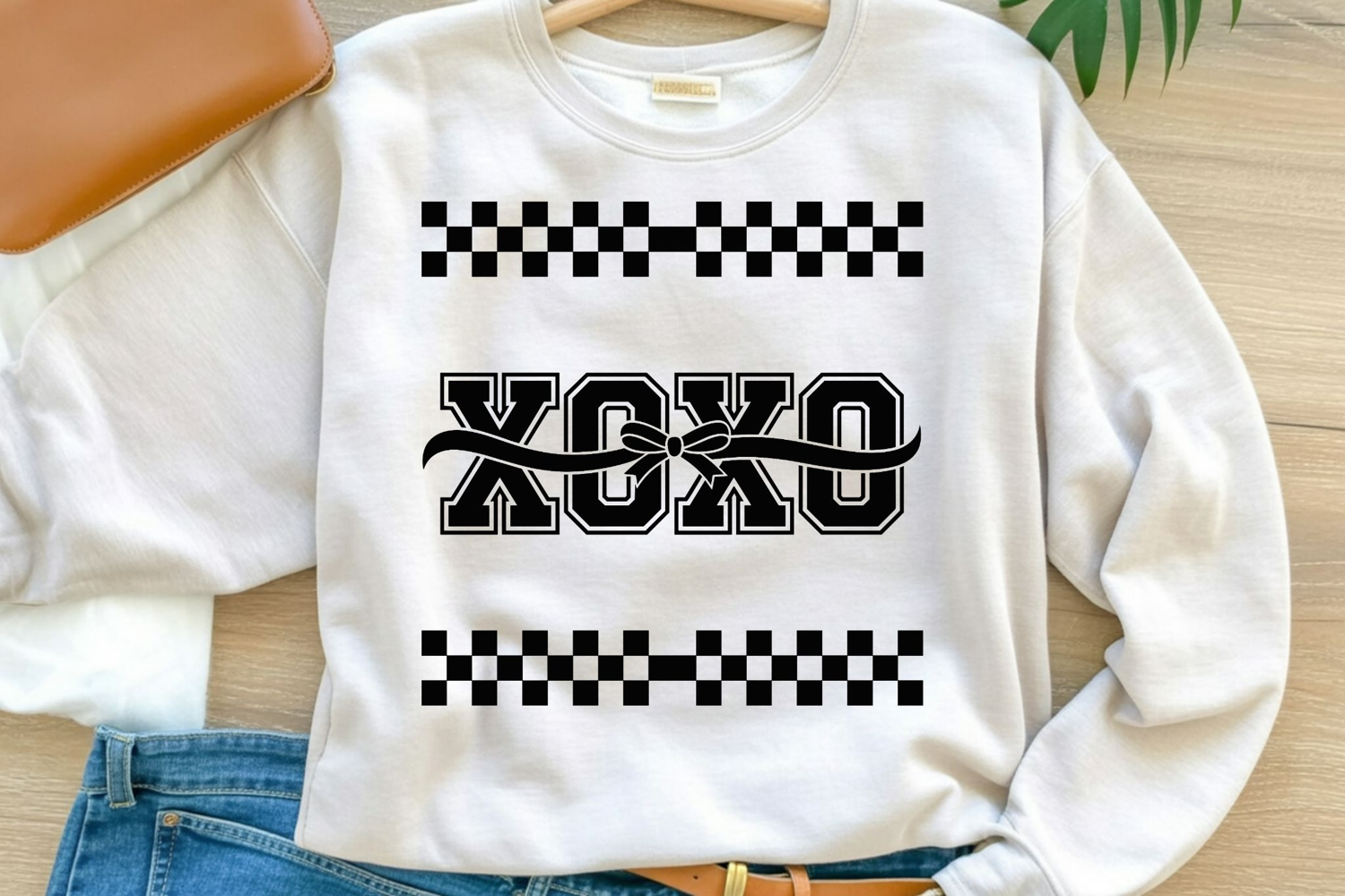 Love Png Xoxo Png Valentine Sublimation Design Checkerboard Png Varsity Valentine Png Xoxo Bow Design Black And White Valentine Clipart Retro Xoxo Png Checkerboard Border Png Trendy Valentine Shirt Design
