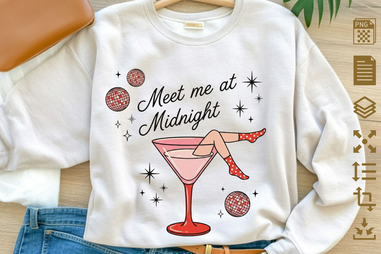 Meet Me At Midnight PNG - Retro New Year’s Eve Sublimation example image 1