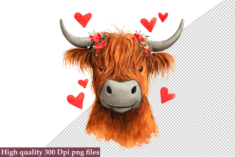 ✔ Valentine Highland Cow Clipart Png: 01 PNG