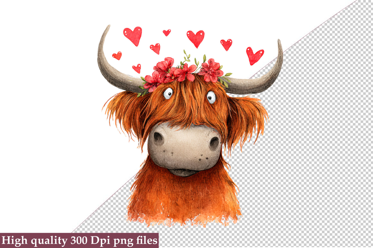 ✔ Valentine Highland Cow Clipart Png: 01 PNG