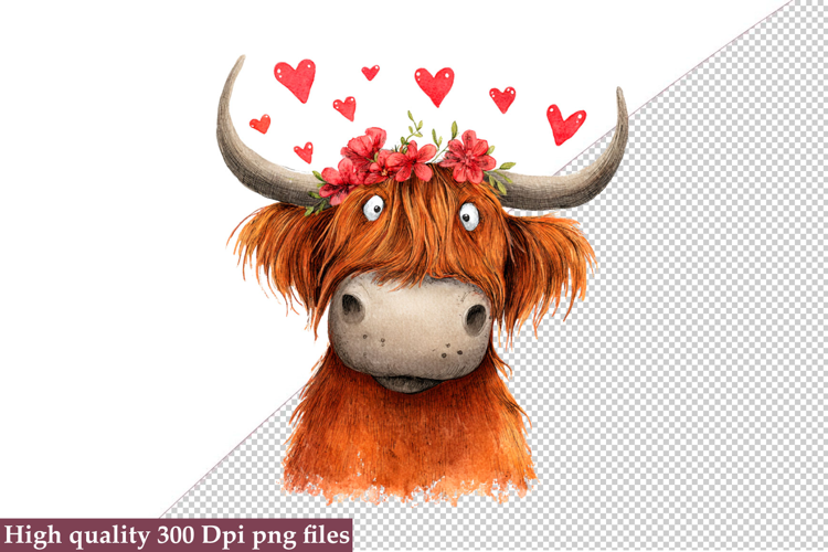 Valentine Highland Cow Clipart Png example image 1