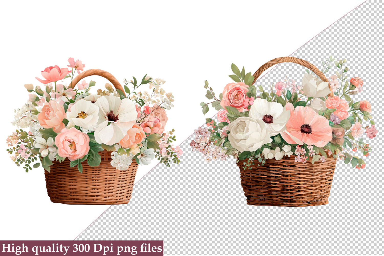 Similar Design Products to Watercolor Flower Basket Clipart, Flower Basket PNG