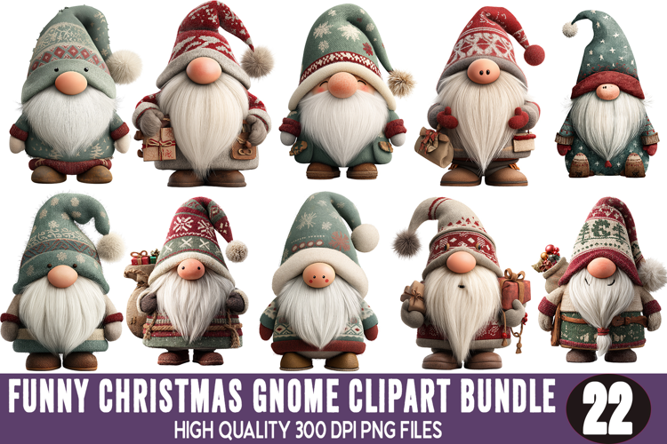 Christmas Gnome Funny Clipart Bundle png example image 1