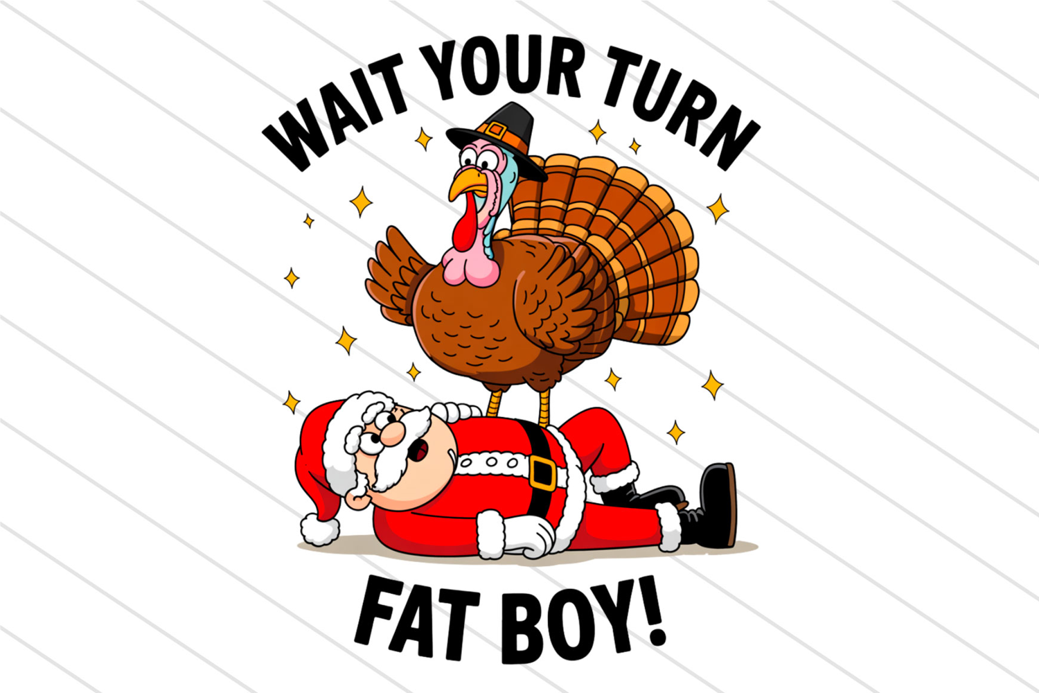 Thanksgiving Svg Funny Thanksgiving Thanksgiving Turkey Clipart Christmas Funny Design Santa And Turkey Wait Your Turn Fat Boy Thanksgiving Christmas Humor Turkey Santa Design Holiday Crossover Clipart Santa And Turkey Clipart