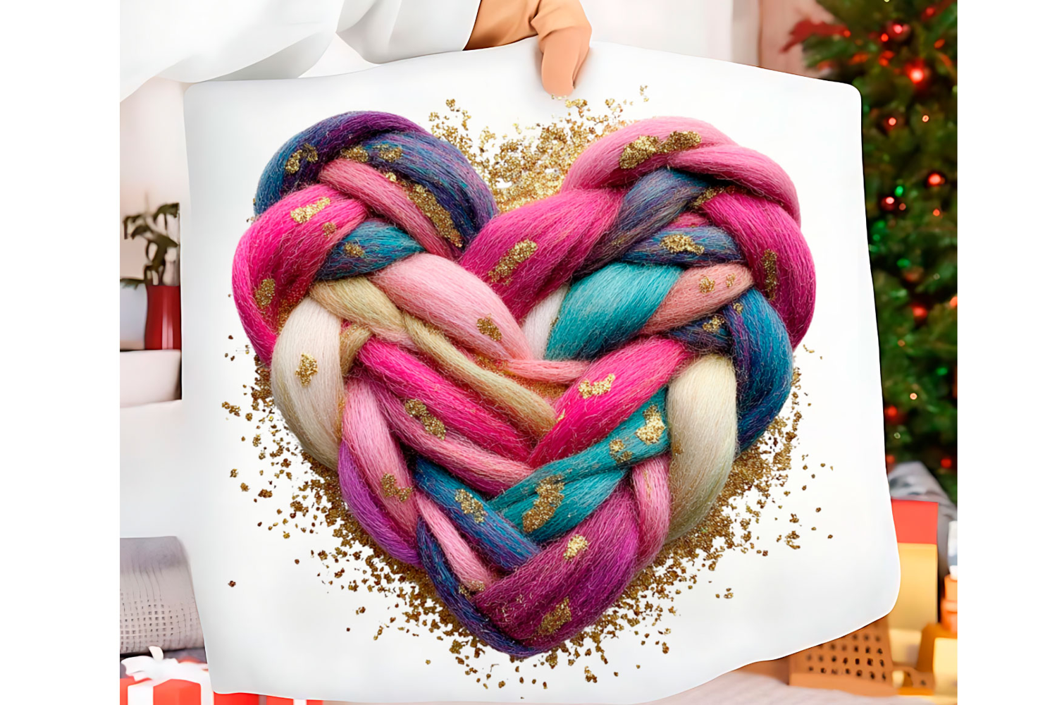 Glitter Crochet Yarn Valentine Heart Png