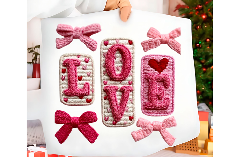 Sublimation Png Shirt Png Valentine's Day Love Valentine Bow Crochet Love Yarn Heart Heart Bow Png Faux Yarn Png Faux Yarn Love Valentine's Day Png Knitted Png