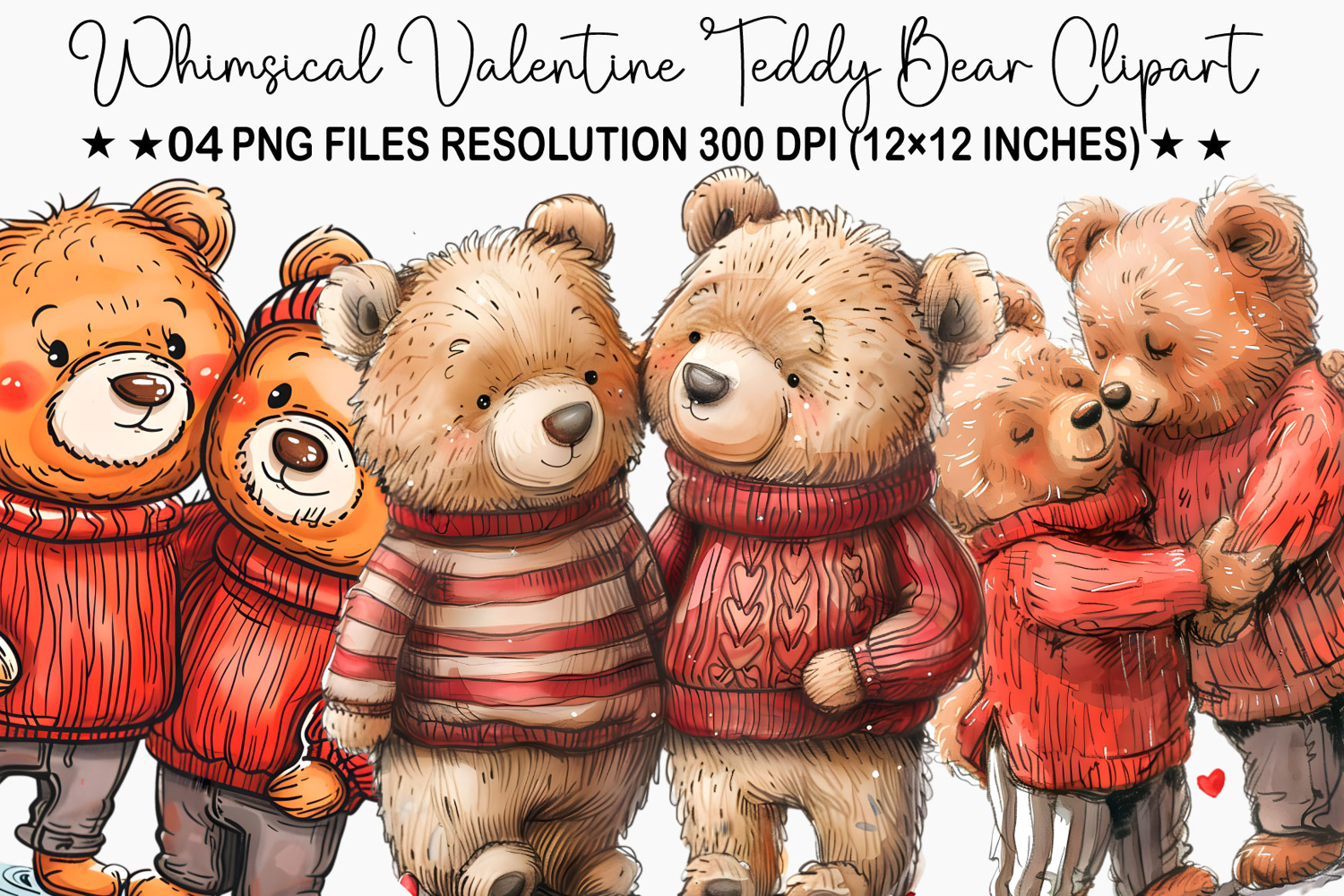 Similar Design Products to Whimsical Valentine Teddy Bear Clipart
