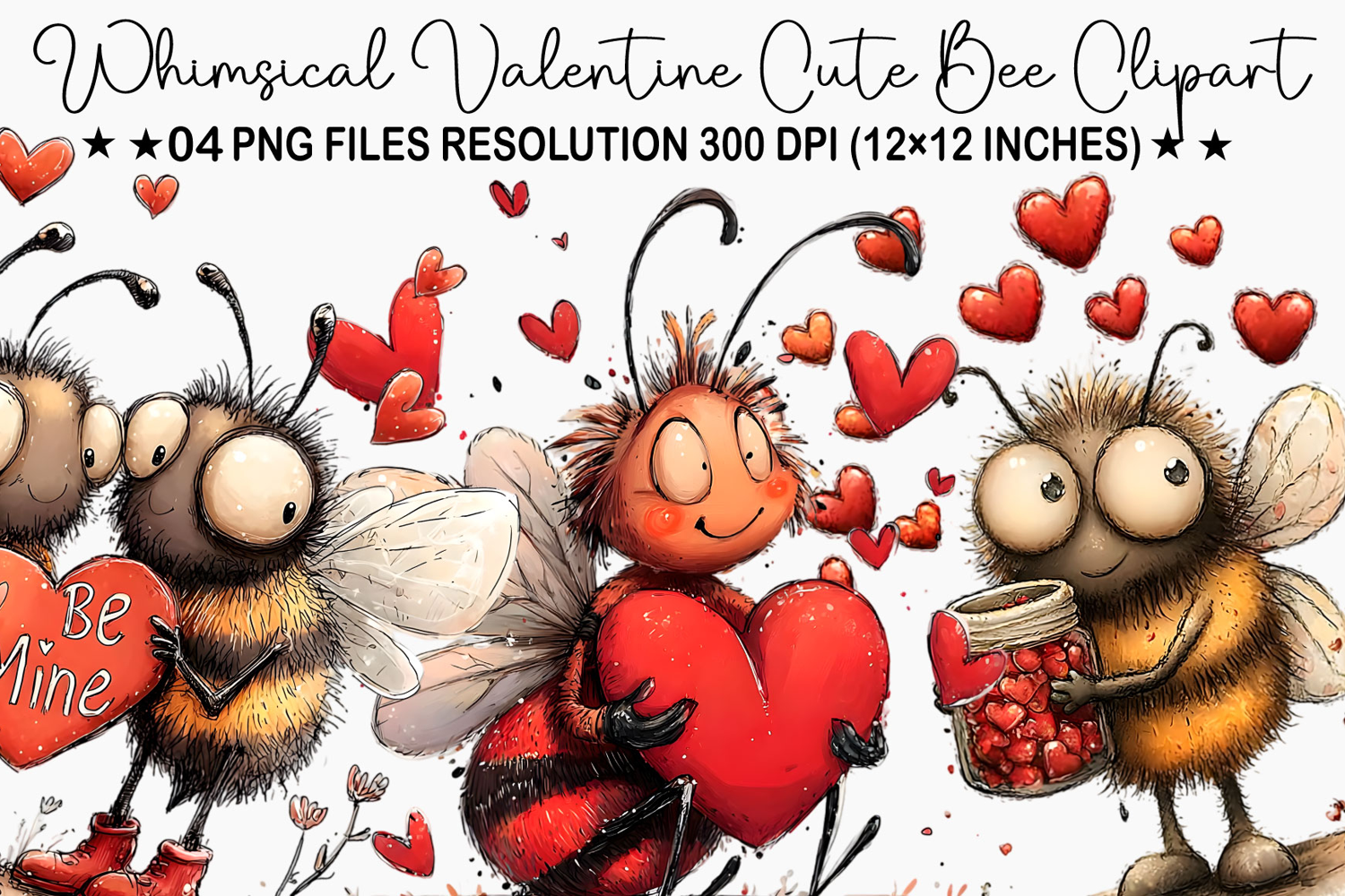 ✅ Whimsical Valentine Cute Bee Clipart ✅