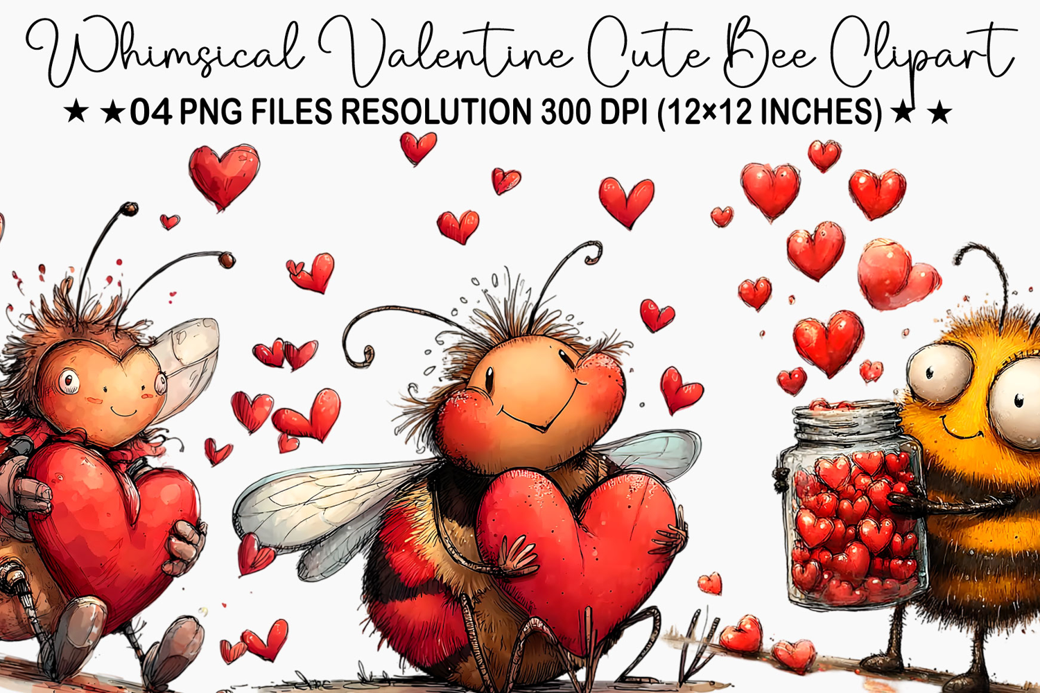 ✅ Whimsical Valentine Cute Bee Clipart ✅