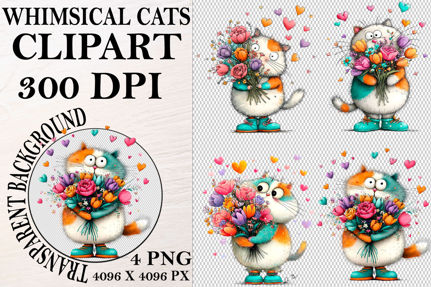 ✅ Whimsical Cats Clipart Watercolor png ✅