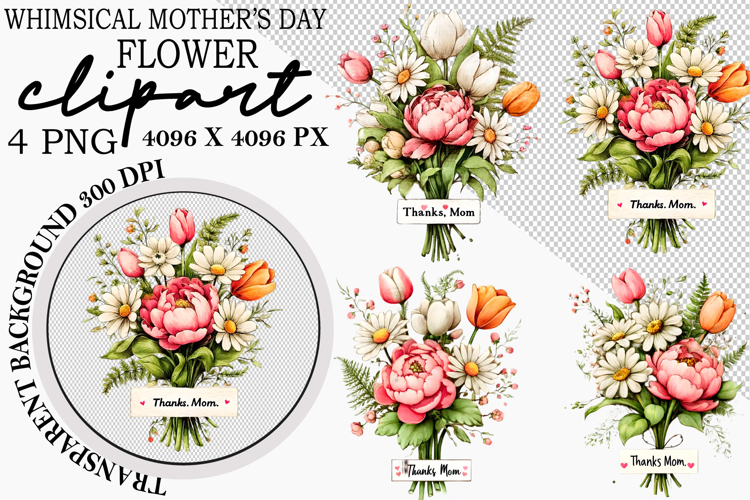 Whimsical Mother’s Day Floral PNG Clipart example image 1