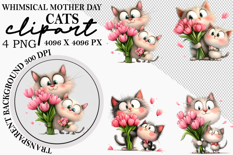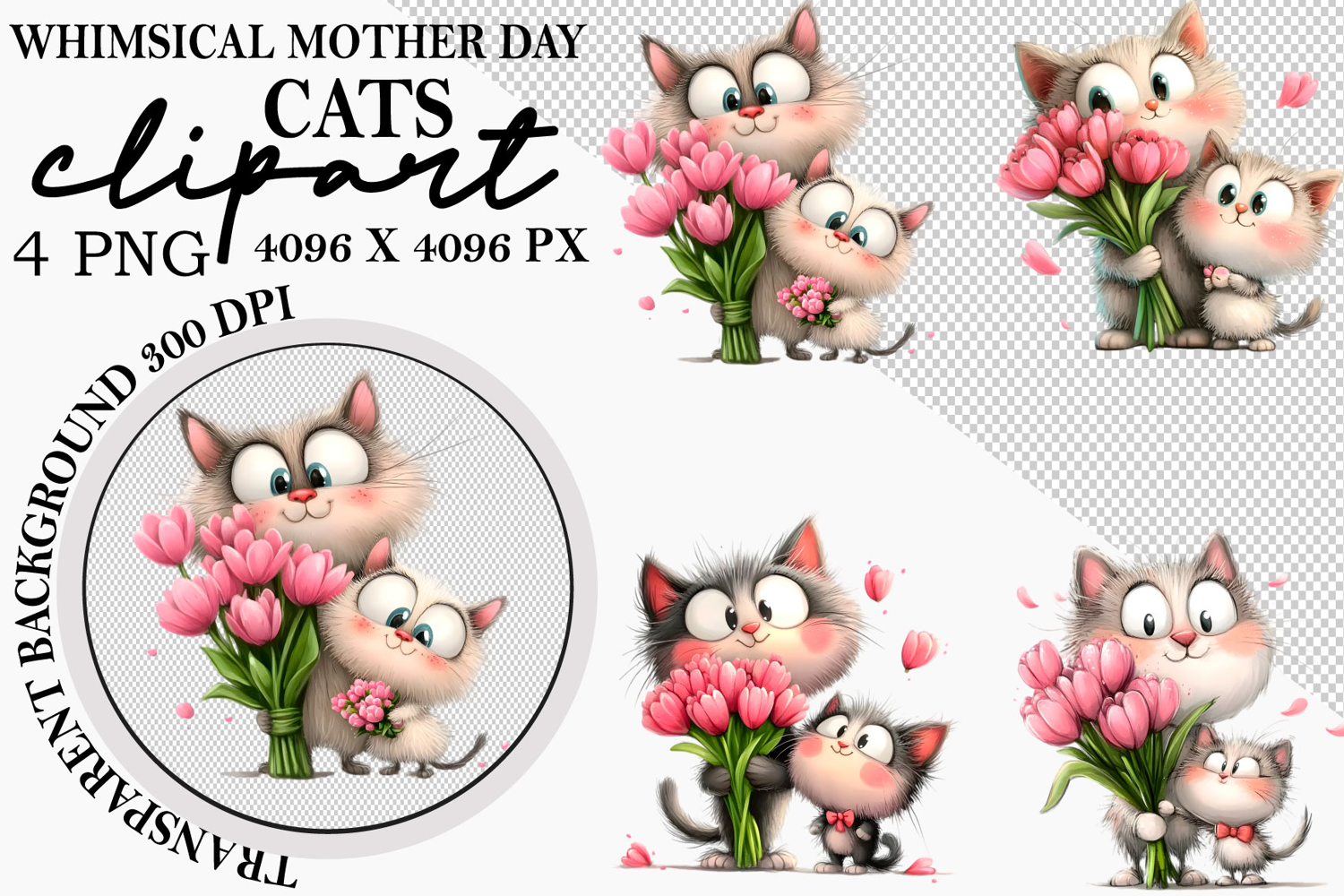 ✅Whimsical Mother Day Cats Clipart Png ✅