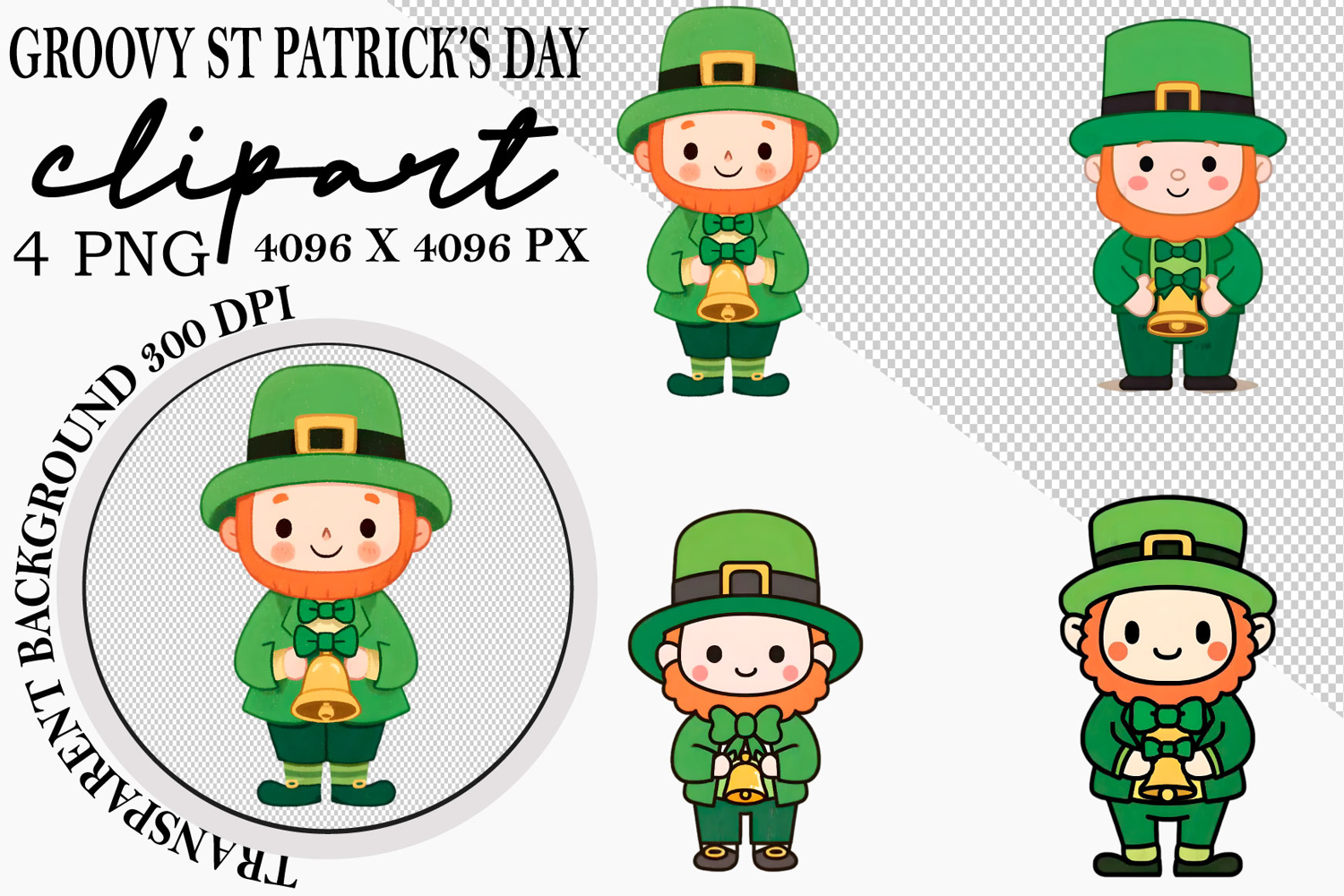 Whimsical Groovy St Patrick’s Day Clipart Watercolor png example image 1