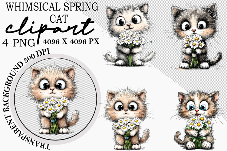 ✅ Whimsical Spring Cat Clipart Png ✅
