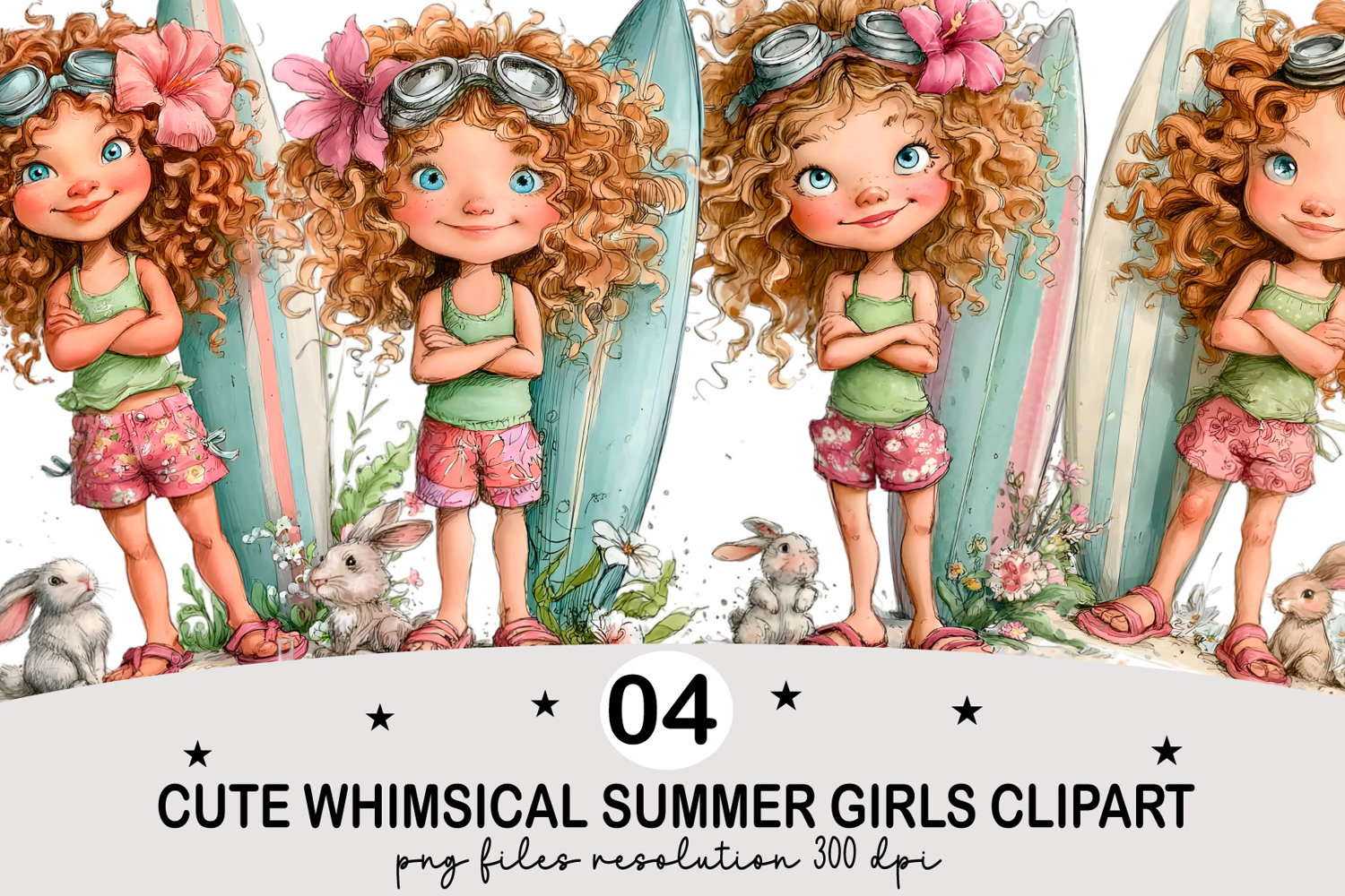 ✅ Cute Whimsical Summer Girls Clipart✅