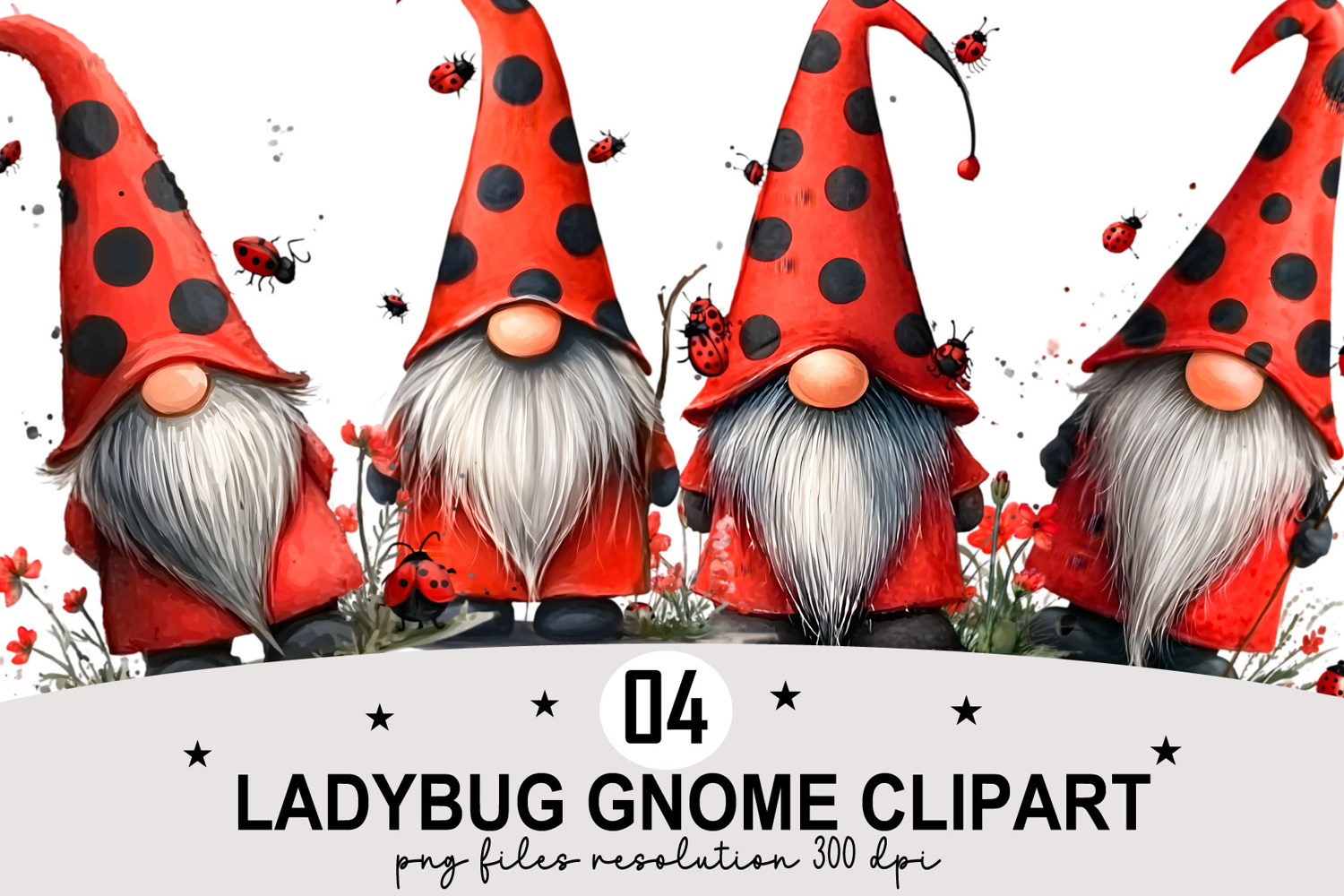 Whimsical Ladybug Gnome Clipart Watercolor png example image 1