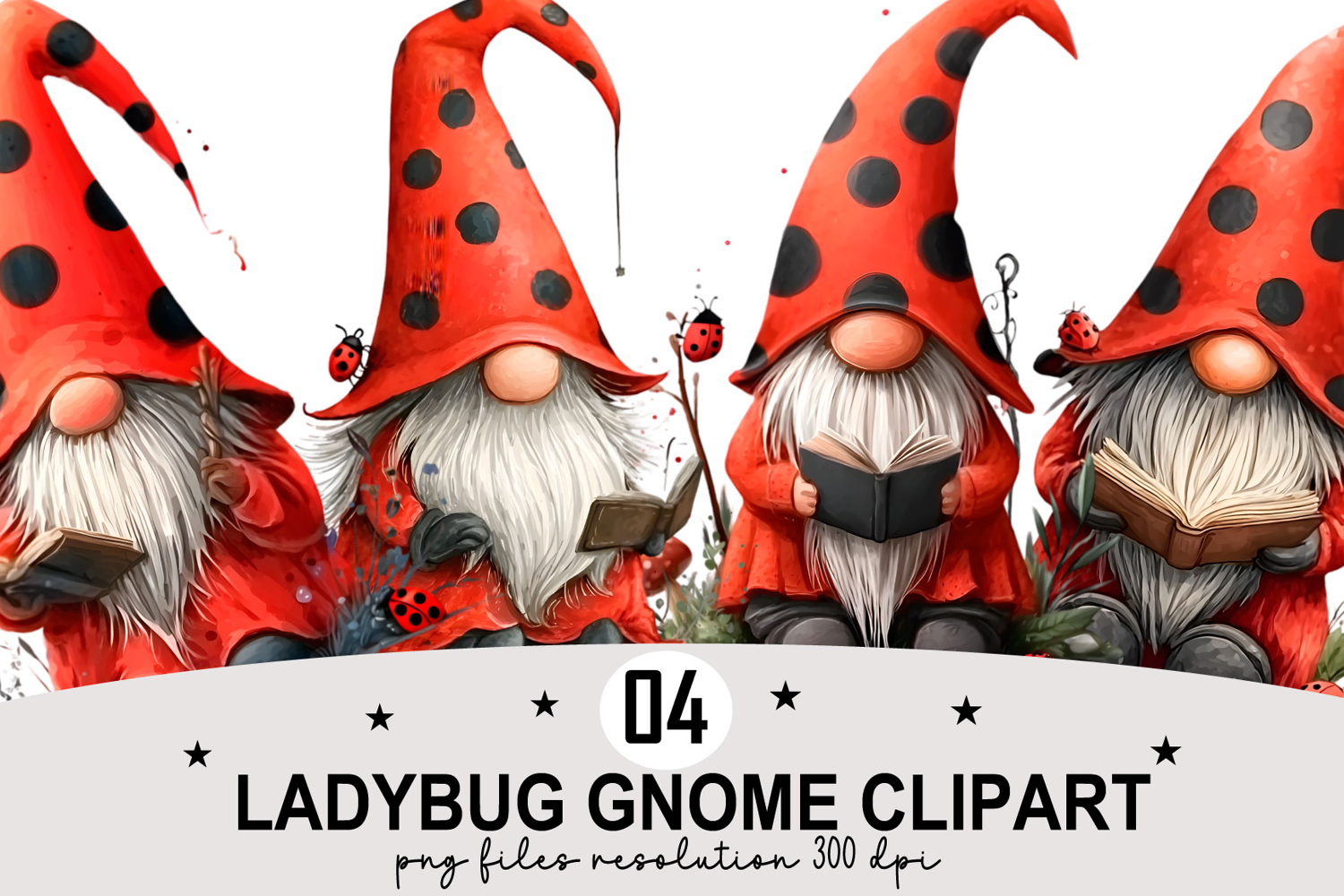 ✅ Whimsical Ladybug Gnome Clipart Watercolor png ✅