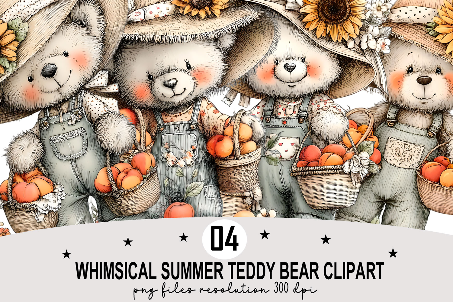 ✅Whimsical Summer Teddy Bear Clipart Watercolor png ✅