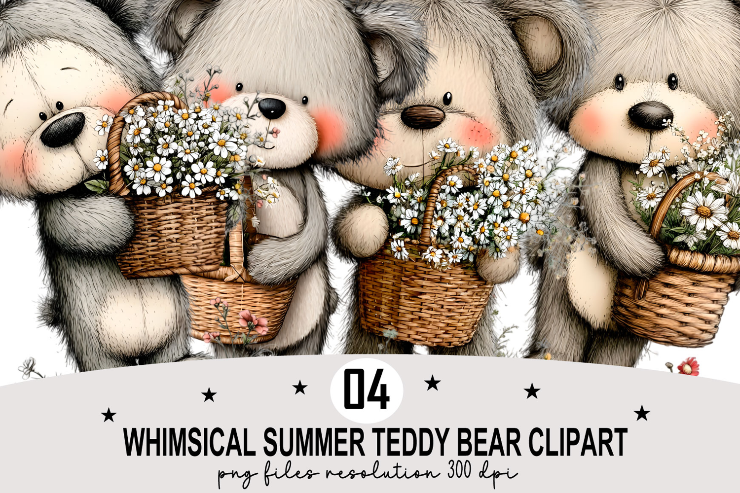 Similar Design Products to Whimsical Summer Teddy Bear Clipart Watercolor png