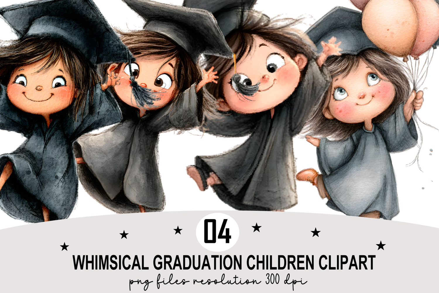 ✅ Whimsical Graduation Children Clipart Watercolor png ✅