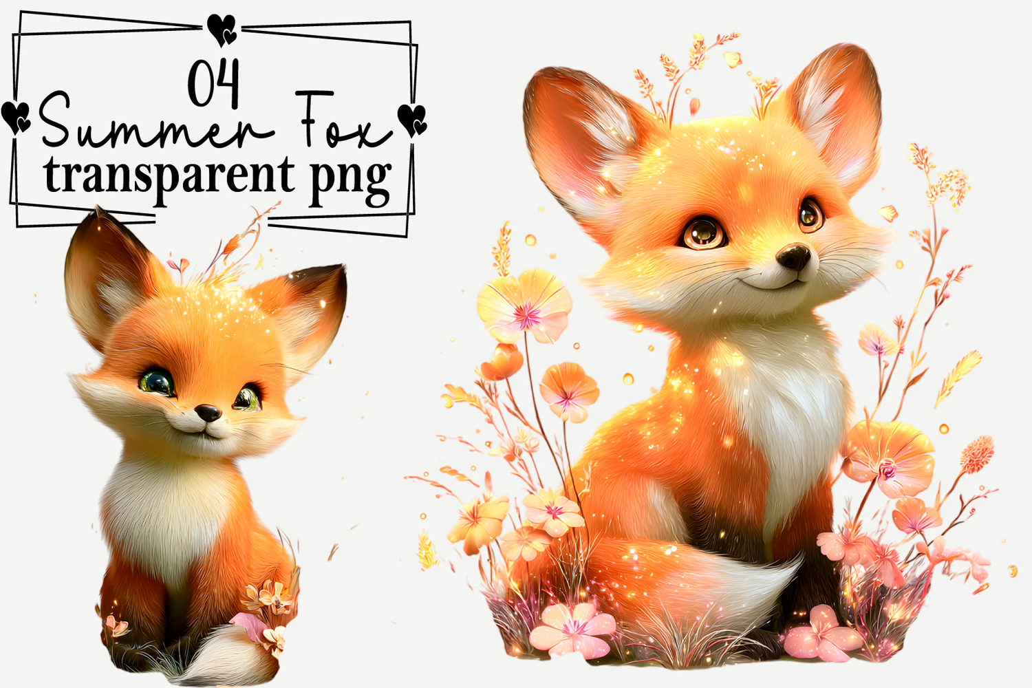 Similar Design Products to Whimsical Summer Fox Clipart Watercolor PNG