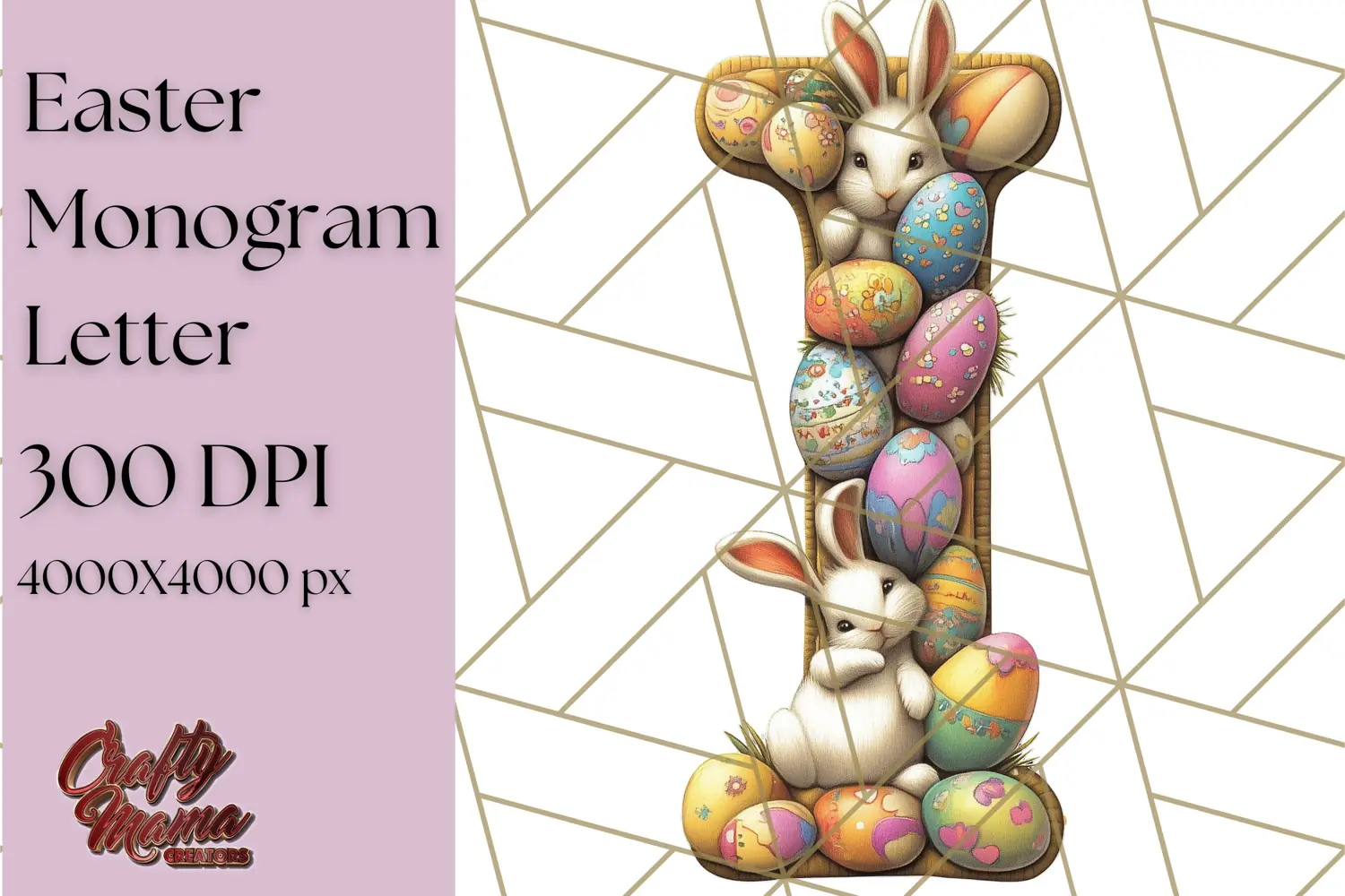 Easter Letter I Clipart, Bunny Alphabet PNG, Egg Monogram example image 1