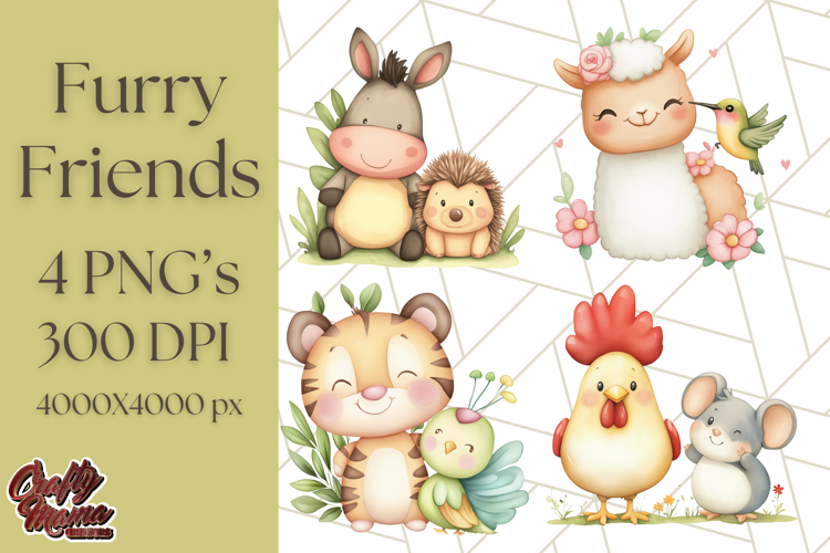 Similar Design Products to Cute Animal Friends Clipart PNG, Whimsical Spring Animal Duo