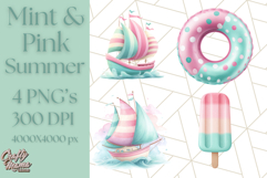 Pink and Mint Summer Clipart PNG Beach Icons, Summer Fun Png example image 1