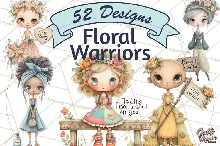 Celebrate strength, beauty, and resilience with this empowering clipart collection of warrior women. Featuring a range of diverse female portraits—including bald women post-chemo, characters in head wraps, and those with floral crowns—this set honors the journey of cancer survivors with grace and softness.