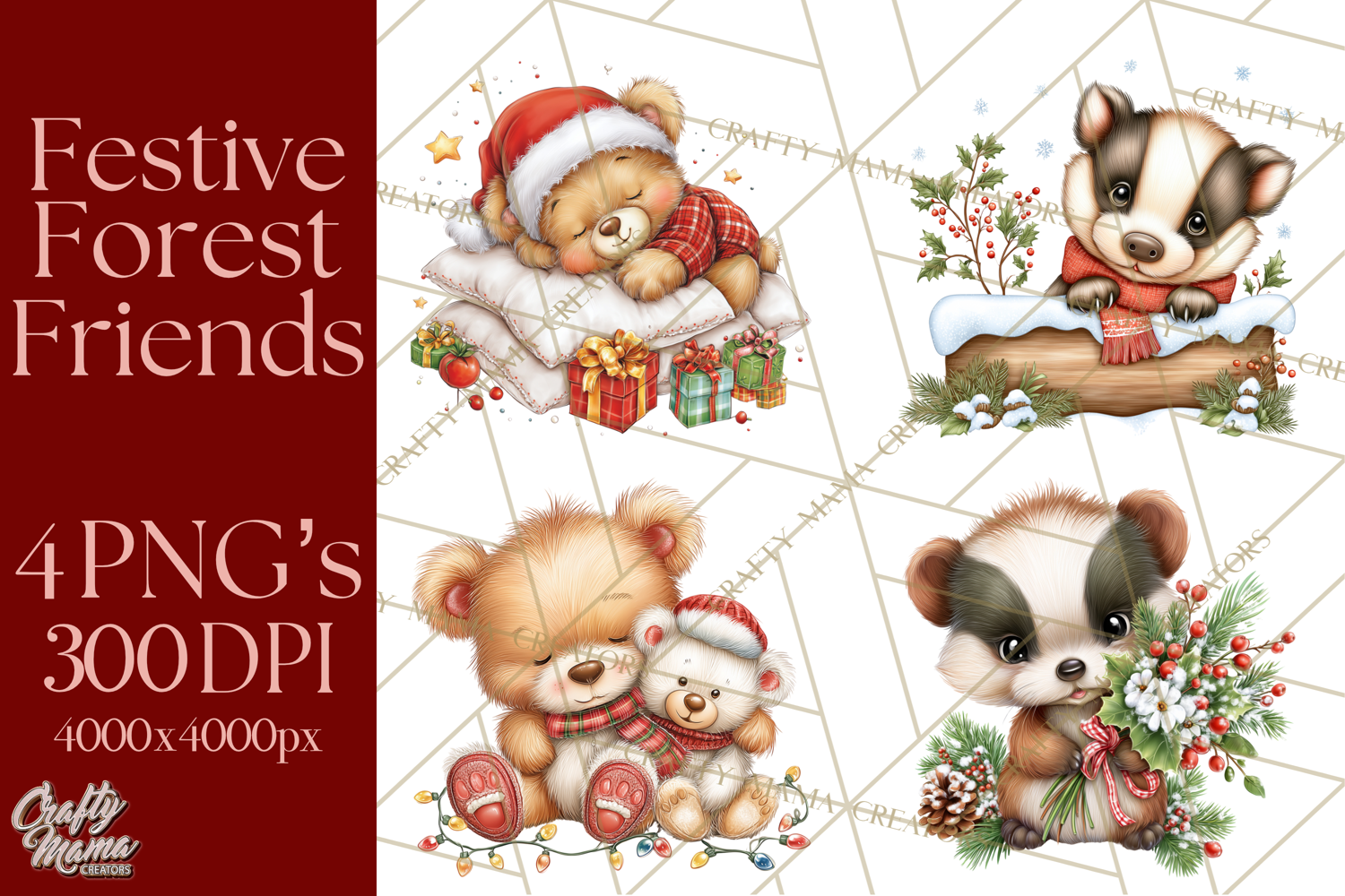 Christmas Woodland Animals PNG, Holiday Forest Clipart