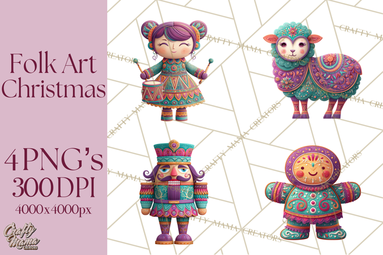 Vibrant Yuletide Friends Clipart, Christmas Folk Art Png example image 1