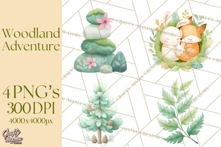 This soft and charming woodland nursery clipart bundle includes 4 pastel watercolor PNG images featuring cute forest animals, mushrooms, trees, leaves, flowers, and more. Each image is designed in a 2D flat style with clean lines and no shadows — perfect for nursery wall art, stickers, children's books, or scrapbooking projects.