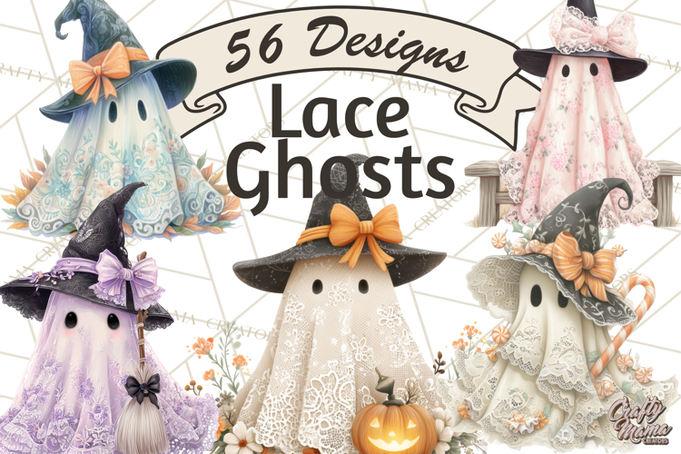 Lace Ghost Halloween Clip Art, Cute Creepy Ghost PNG example image 1