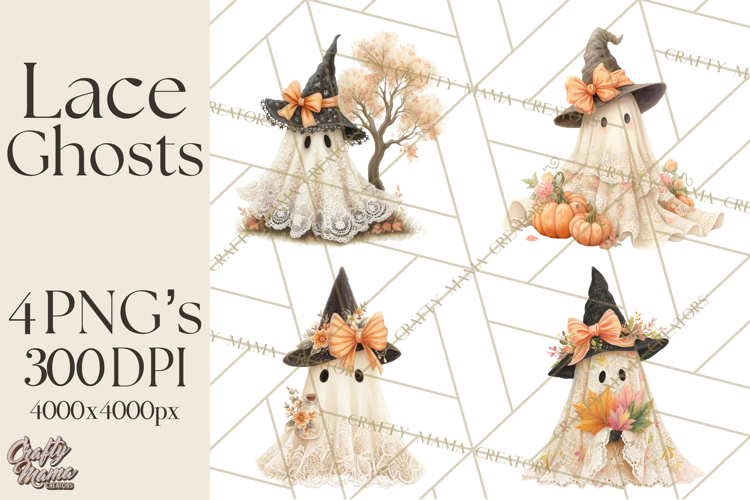 Lace Ghost Halloween Clip Art, Cute Creepy Ghost PNG example image 1