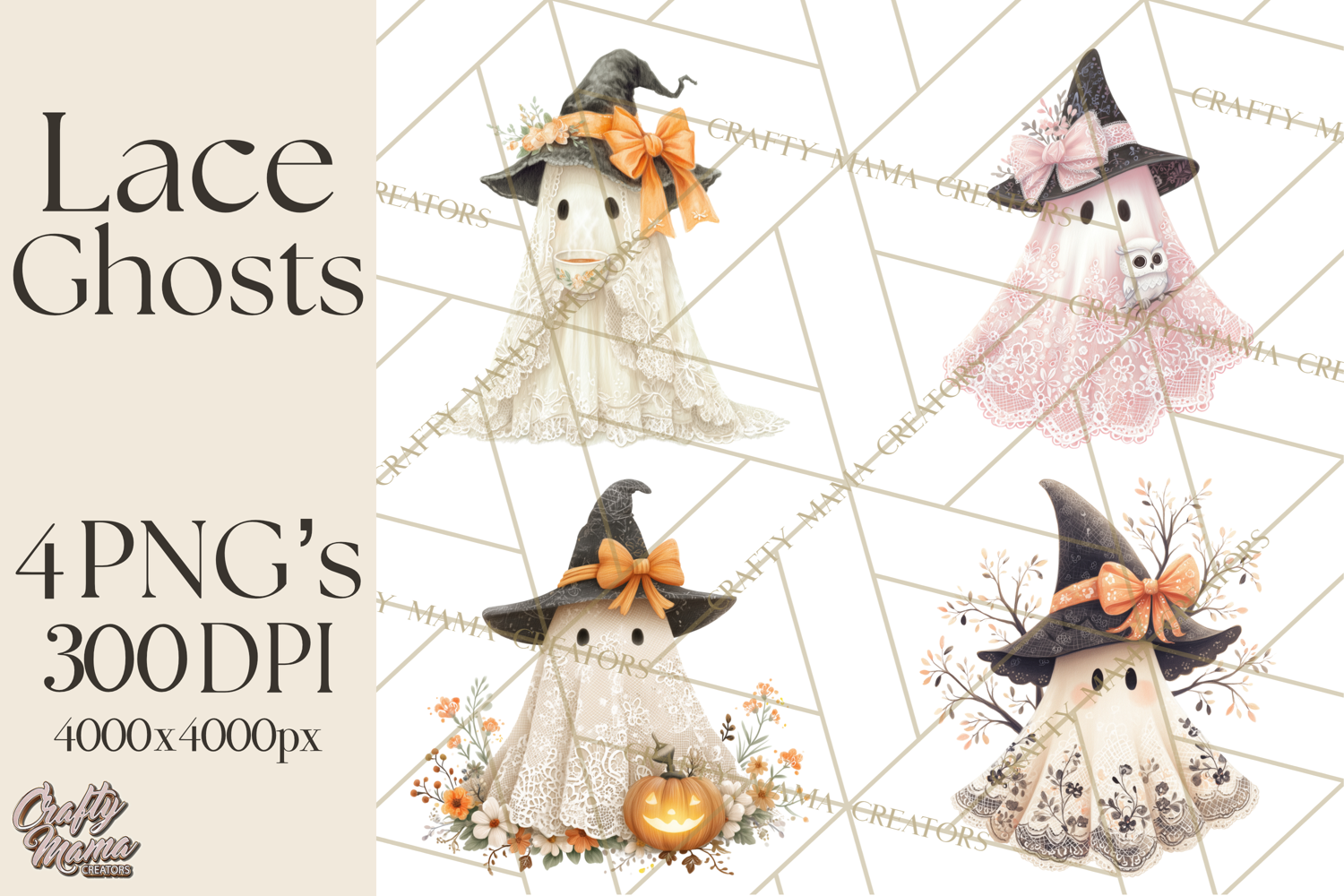 Lace Ghost Halloween Clip Art, Cute Creepy Ghost PNG example image 1