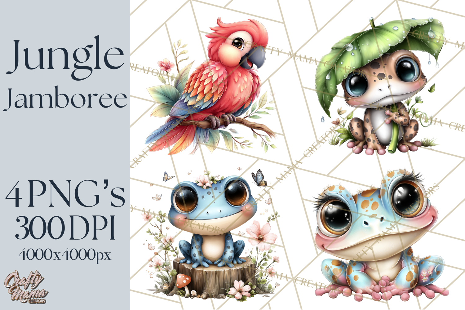 Step into the tropics with this colorful Tropical Jungle clipart collection. Featuring cute wild animals and jungle elements like trees, vines, tropical plants, and fruits, it’s perfect for scrapbooking, invitations, kids’ crafts, and classroom projects. With 4 PNG images, you’ll have everything you need to create lively jungle mini world scenes.