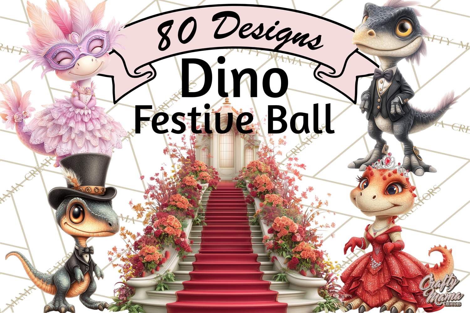 Bring your creative projects to life with this Dinosaur Princess Ball Clipart Collection! Perfect for invitations, party décor, scrapbooking, or crafts, these adorable baby dinosaurs are dressed for a magical royal ball.
