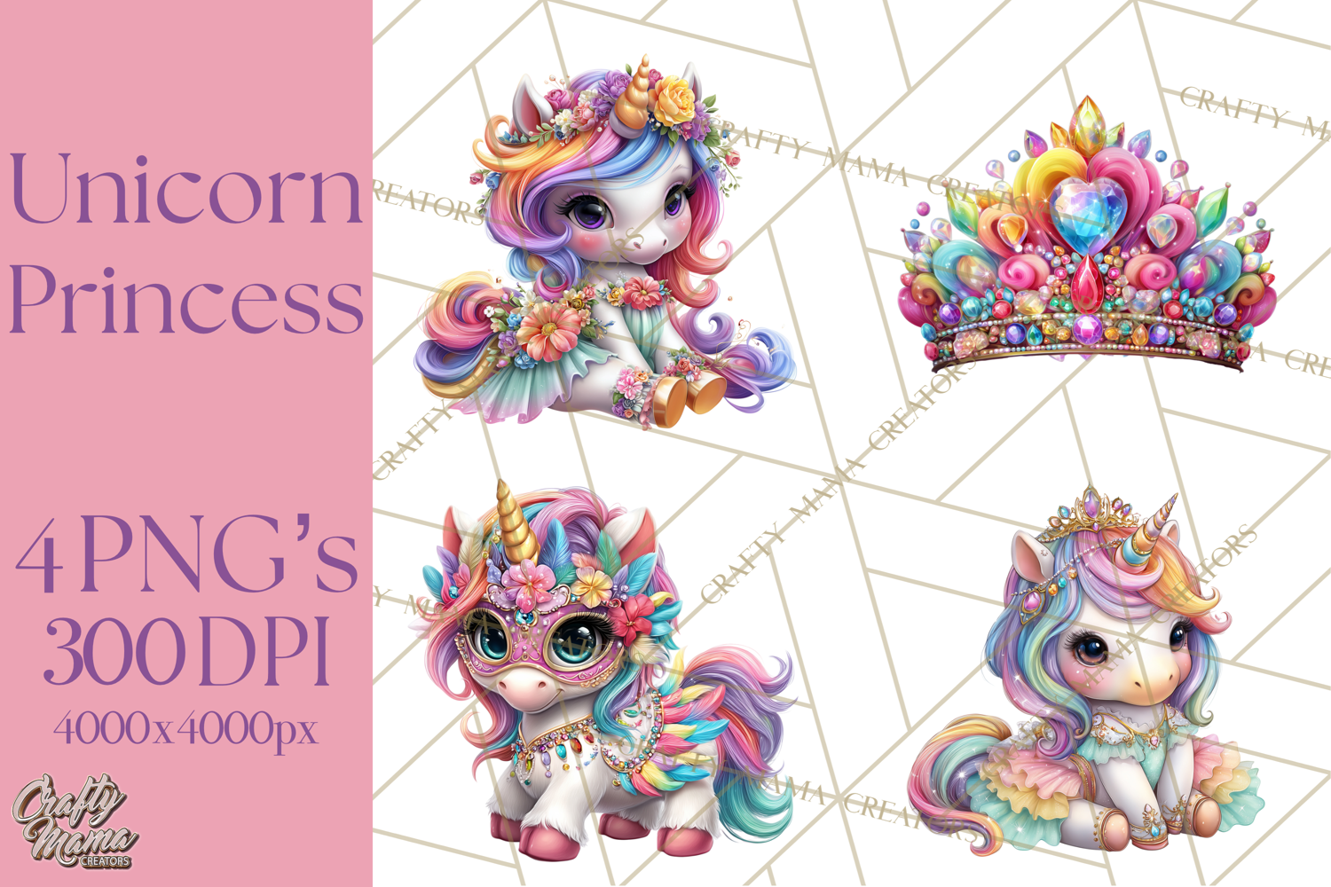 Bring your creative projects to life with this Unicorn Princess Ball Clipart Collection! Perfect for invitations, party décor, scrapbooking, or crafts, these adorable baby unicorns are dressed for a magical royal ball.