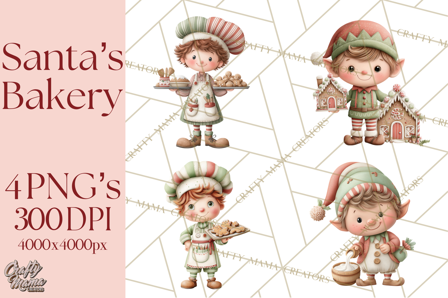 Get ready to bake some holiday magic with this charming collection of Holiday Baking clipart! This delightful set features beloved characters like Santa, elves, and Mrs. Claus, along with festive kitchen tools, gingerbread cookies, and other delicious treats. Perfect for holiday party invitations, recipe cards, digital planners, and much more.